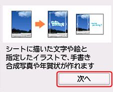 プリンターから印刷した手書きナビシートを使って、写真を手書き文字や絵と合成して印刷することができます。