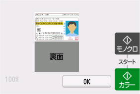 表示される案内に従ってIDカードの表面を下に向けて原稿台にセットし、[OK]を選ぶ