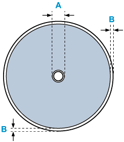 プリンタブルディスクの印刷領域は、印刷面の最小内径17 mm(0.67 in.)から、最大外径の1 mm(0.04 in.)内側までの範囲です。