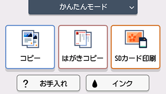 「かんたんモード」では、細かい設定をすることなく、普通紙やはがきへのコピー、メモリーカードからの写真印刷などの機能を簡単に使えます。