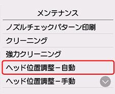 [メンテナンス]画面で[ヘッド位置調整値を印刷]を選ぶと、現在の調整値を印刷して確認することができます。