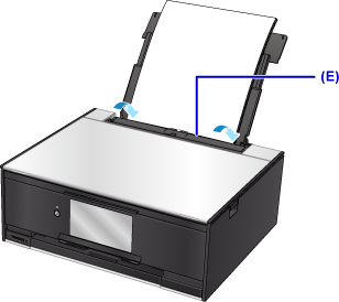 4. Alinee las guías del papel (D) con el ancho del papel.