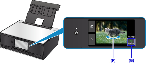 Vérifiez les paramètres de papier, puis touchez le bouton Couleur (Color) (G).