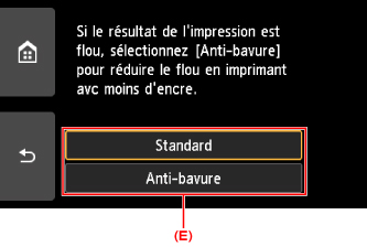 Si le résultat de l'impression est floue, sélectionnez Anti-bavure. Le bavures peuvent être réduites en imprimant avec moins d'encre.