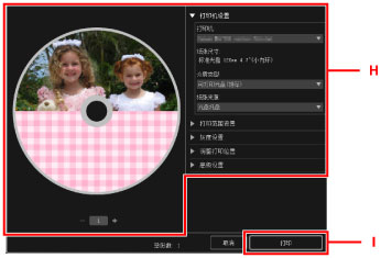 本节描述如何使用My Image Garden在可打印光盘上打印照片。