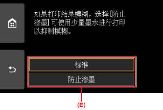 如果打印结果模糊,请选择防止渗墨。 可使用更少的墨水进行打印以改善模糊情况。