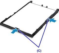 4. Вирівняйте напрямники для паперу (C) з довжиною та шириною паперу.