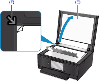 Заредете оригинала СЪС СТРАНАТА ЗА КОПИРАНЕ, ОБЪРНАТА НАДОЛУ, и го подравнете със знака за подравняване (F).
