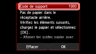 Lorsqu'un code support et un message s'affichent à l'écran :