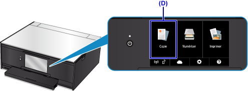 Le panneau de contrôle est ouvert et le bac de sortie papier est tiré automatiquement, puis la copie démarre.