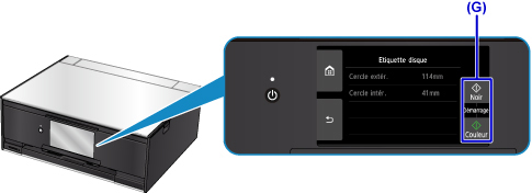 Vérifiez les paramètres d'impression, puis touchez le bouton Noir (Black) ou le bouton Couleur (Color) (G).