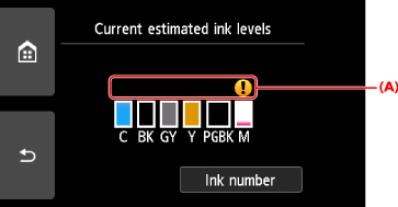 Estimated ink levels.A symbol appears in the area (A) if there is any information about the remaining ink level.