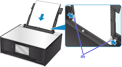 Slide the paper guides (D) to align them with both sides of the paper stack.