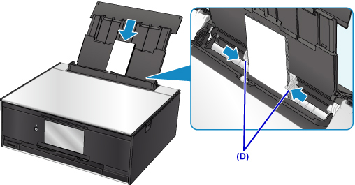 Slide the paper guides (D) to align them with both sides of the envelopes.