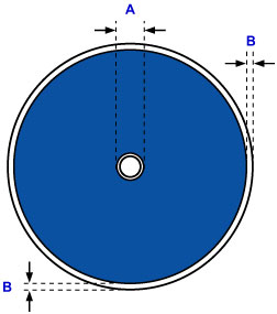 The printing area of the printable disc is from 0.67 inch (17 mm) of the internal diameter to 0.04 inch (1 mm) from the external diameter of the printing surface.
