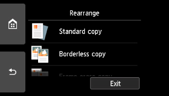 Den berøringsfølsomme skærm vender tilbage til skærmbilledet med kopieringsmenuen.