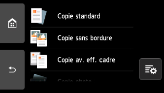 L'écran tactile revient sur l'écran du menu de copie.