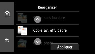 Vous pouvez réorganiser l'ordre d'affichage du menu de copie.