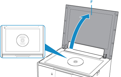 Deschideţi capacul pentru documente (F).