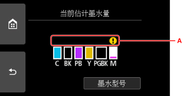 如果存在任何关于剩余墨水量的信息,区域(A)中会显示一个符号。