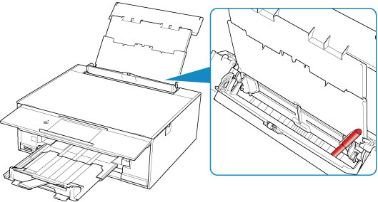 في حالة وجود أية أجسام غريبة في الدرج الخلفي، تأكد من إيقاف تشغيل الطابعة وفصلها عن مصدر الطاقة، ثم قم بإزالة الجسم الغريب.
