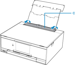 Aliniaţi ghidajele pentru hârtie (D) cu lăţimea hârtiei.