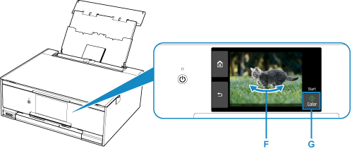 Confirmaţi setările pentru hârtie, apoi apăsaţi butonul Culoare (Color) (G).