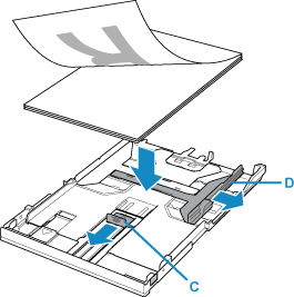 Glisaţi ghidajele pentru hârtie (C) spre partea frontală şi (D) spre dreapta pentru a deschide ghidajele.
