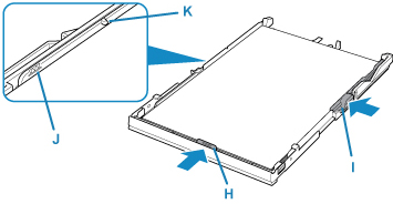 - Menţineţi înălţimea stivei de hârtie sub proeminenţele (K) ale ghidajelor pentru hârtie.