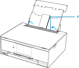 Glisaţi ghidajele pentru hârtie (D) pentru a le deschide şi încărcaţi plicurile în centrul tăvii din spate CU FAŢA DE IMPRIMAT ORIENTATĂ ÎN SUS.