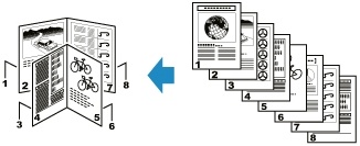 يمكنك طباعة الصفحات الممسوحة ضوئيًا على الوجهين الأمامي والخلفي للورق، ثم يمكنك طي الصفحات المطبوعة إلى نصفين لإنشاء كتيب.