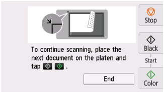 Ако не продължавате да сканирате, изберете Край (End). Сканираните данни се препращат към компютъра.