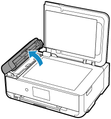Използвайте кърпата, за да избършете праха от хартията по вътрешността на капака на подаващото устройство (A).