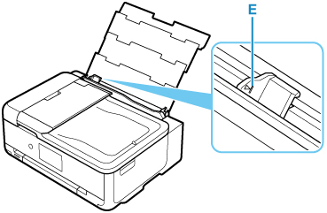 Skub højre papirstyr (D) for at åbne begge papirstyr.