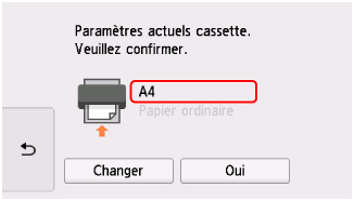 Si le format de page sur l'écran tactile correspond au papier chargé dans la cassette, sélectionnez Oui.
