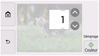 pour spécifier le nombre de copies.Maintenez appuyé pour spécifier le nombre de copies par tranches de 10.
