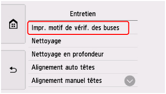 Imprimez le motif de vérification des buses afin de déterminer si l'encre s'écoule correctement de la buse de tête d'impression.