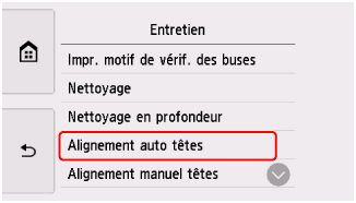 La feuille d'alignement de la tête d'impression est imprimée et la tête d'impression est alignée automatiquement.