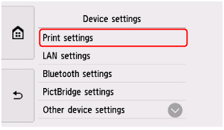 Postavke uređaja (Device settings).Prikazuje se zaslon Postavke uređaja (Device settings).