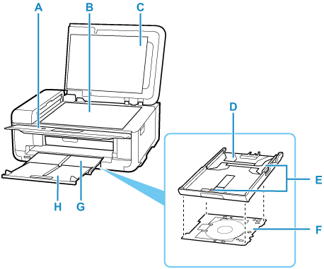 - Atidarykite, jei reikia įdėti popierių į galinį dėklą.