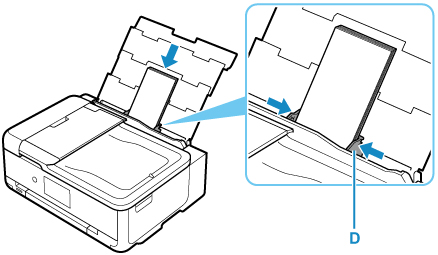 4. Skyv høyre papirfører (D) for å åpne begge papirførerne.