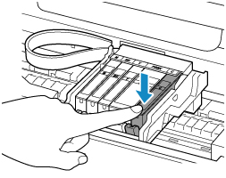 Нажимайте на верхнюю часть чернильного контейнера, пока чернильный контейнер не зафиксируется на месте.