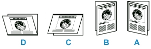 يمكنك طباعة الصفحات الممسوحة ضوئيًا على الوجهين الأمامي والخلفي للورق، ثم يمكنك طي الصفحات المطبوعة إلى نصفين لإنشاء كتيب.