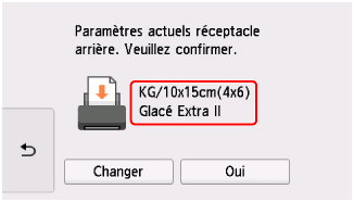 Si le format de papier et le type de support sur l'écran tactile correspondent au format et au type de papier chargé dans le réceptacle arrière, sélectionnez Oui.