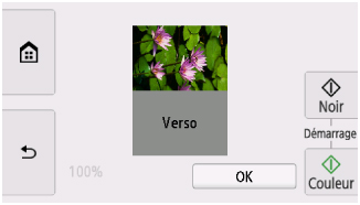 Toucher Couleur ou Noir démarre la numérisation du recto.