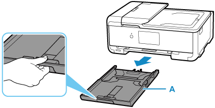 Faites glisser les guides papier (B) vers l'avant et (C) vers la droite pour ouvrir les guides.