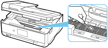 Se il problema persiste dopo avere eseguito la pulizia della lastra inferiore, è possibile che le parti sporgenti all'interno della stampante siano macchiate. Utilizzare un bastoncino di cotone o uno strumento simile per eliminare l'inchiostro.