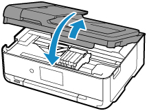 Nếu bộ quét / nắp vẫn mở trong hơn 10 phút, khay chứa đầu in sẽ di chuyển sang bên phải. Trong trường hợp này, đóng và mở lại bộ quét / nắp.