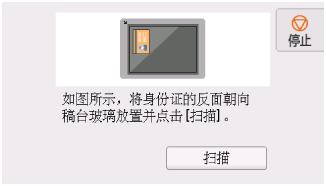 按照屏幕上的说明将身份证的背面向下放置在稿台玻璃上,然后选择扫描。