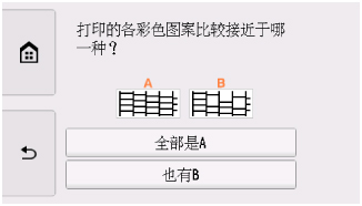 选择确认屏幕上更接近已打印的喷嘴检查图案的图案。